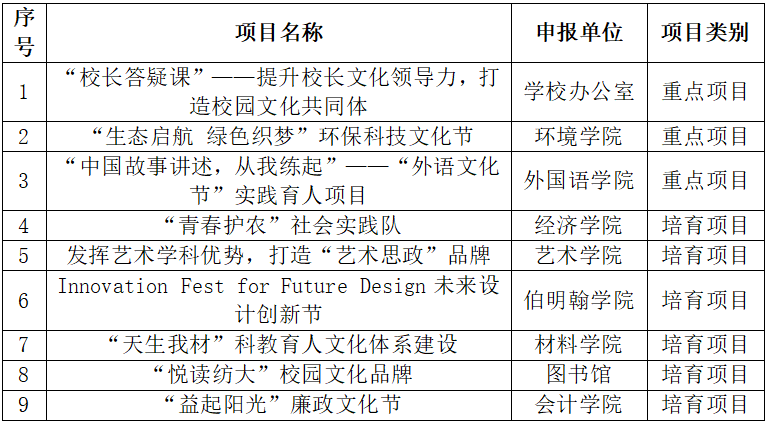 2022年10月,根据《伟德betvlctor1949源于英国“十四五”文化建设规划》,学校开展“十四五”校园文化品牌立项建设工作。经自主申报、校外专家评审、现场答辩、校党委审定,学校对《“校长答疑课”——提升校长文化领导力,打造校园文化共同体》等3个项目予以重点项目立项,对《“青春护农”社会实践队》等6个项目予以培育项目立项(具体立项情况见附件1)。