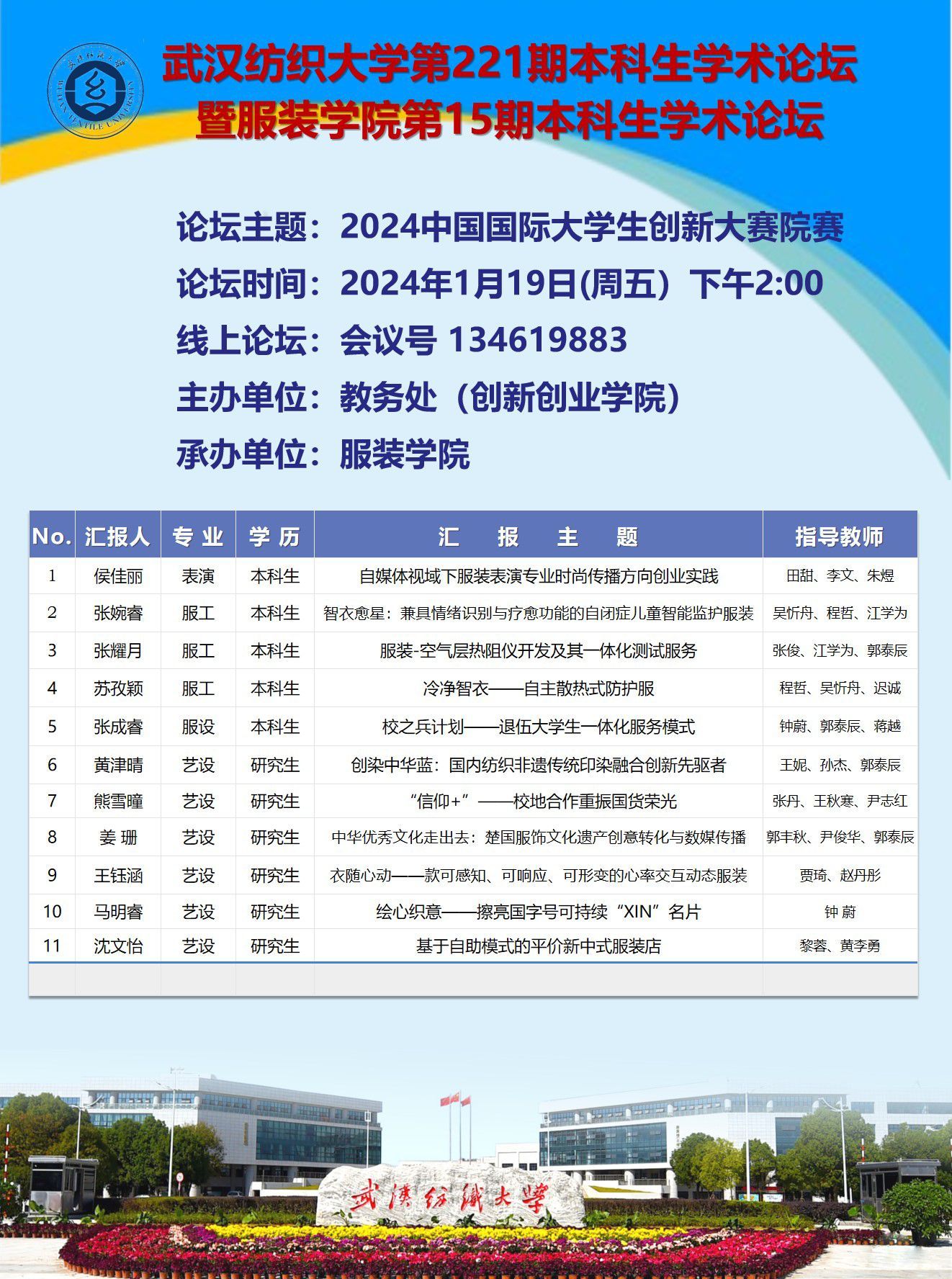 第221期本科生学术论坛暨服装学院第15期本科生论坛
