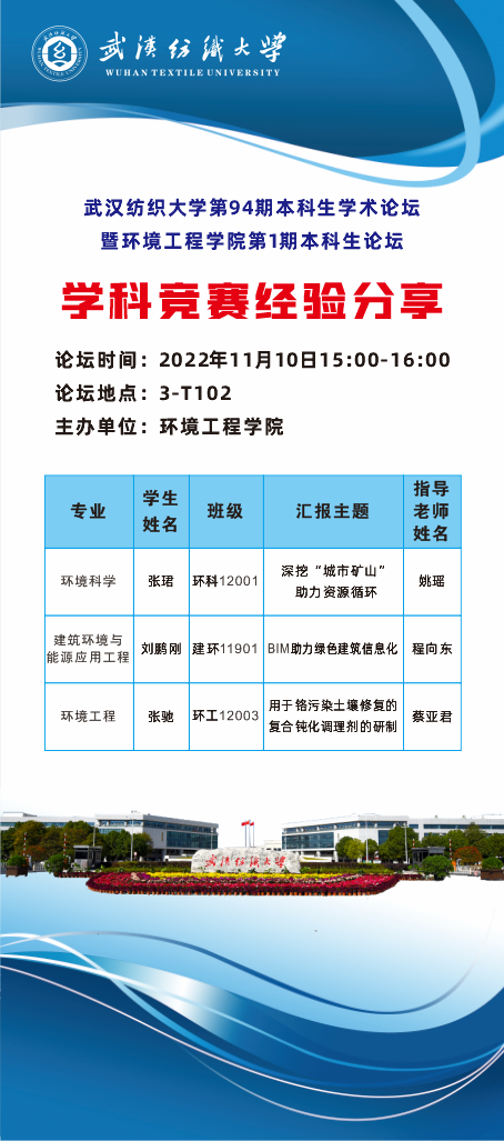 伟德betvlctor1949源于英国第94期本科生学术论坛暨环境工程学院第1期本科生论坛