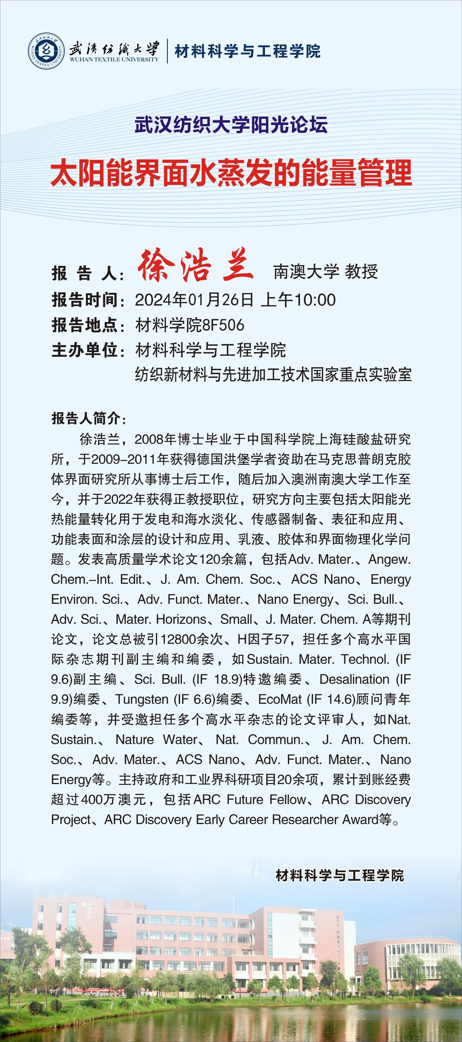材料科学与工程学院举办学校第563期阳光论坛预告