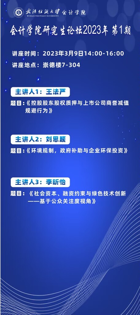 学术预告:第206期研究生学术论坛暨会计学院2023年第1期研究生学术论坛