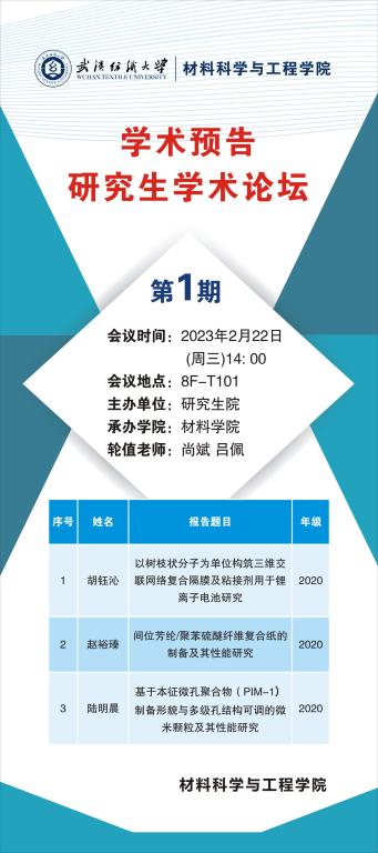 学术预告:第207期研究生学术论坛暨材料科学与工程学院2023年第1期研究生学术论坛