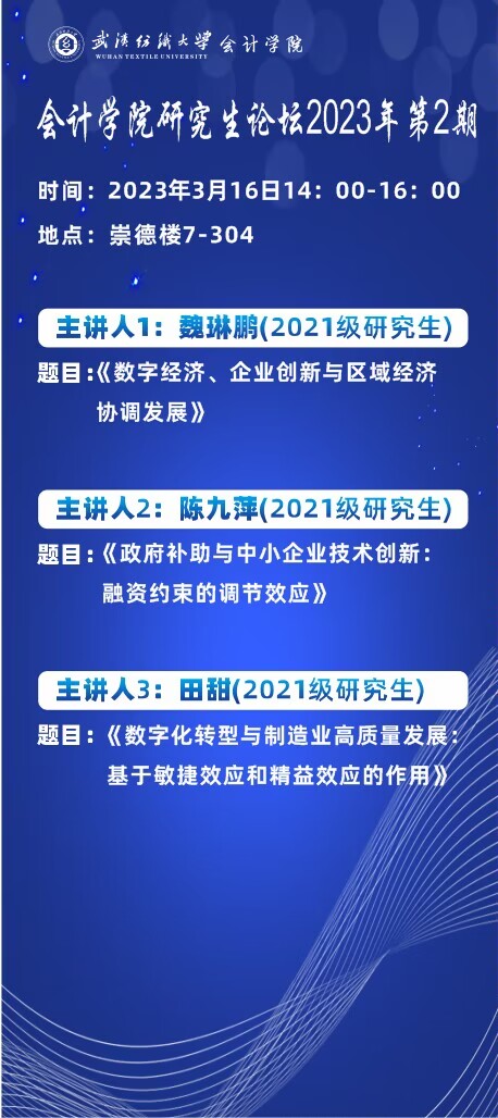 学术预告:第215期研究生学术论坛暨会计学院2023年第2期研究生学术论坛