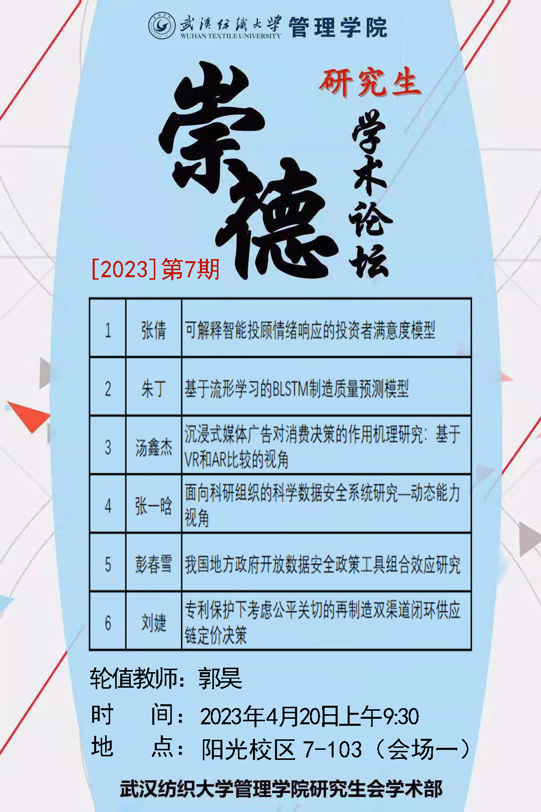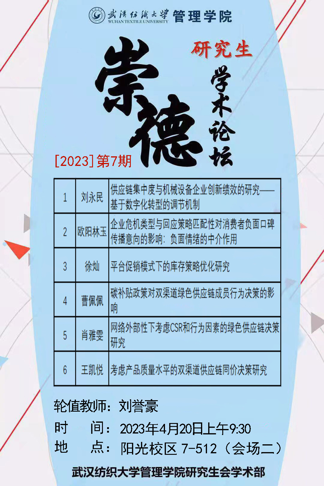 学术预告:第259期研究生学术论坛暨管理学院2023年第7期研究生学术论坛