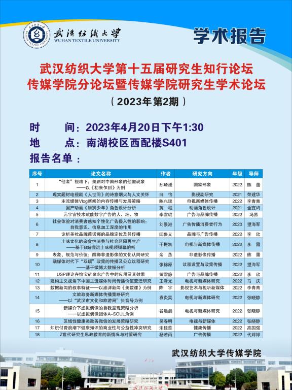 学术预告:第264期研究生学术论坛暨传媒学院2023年第2期研究生学术论坛