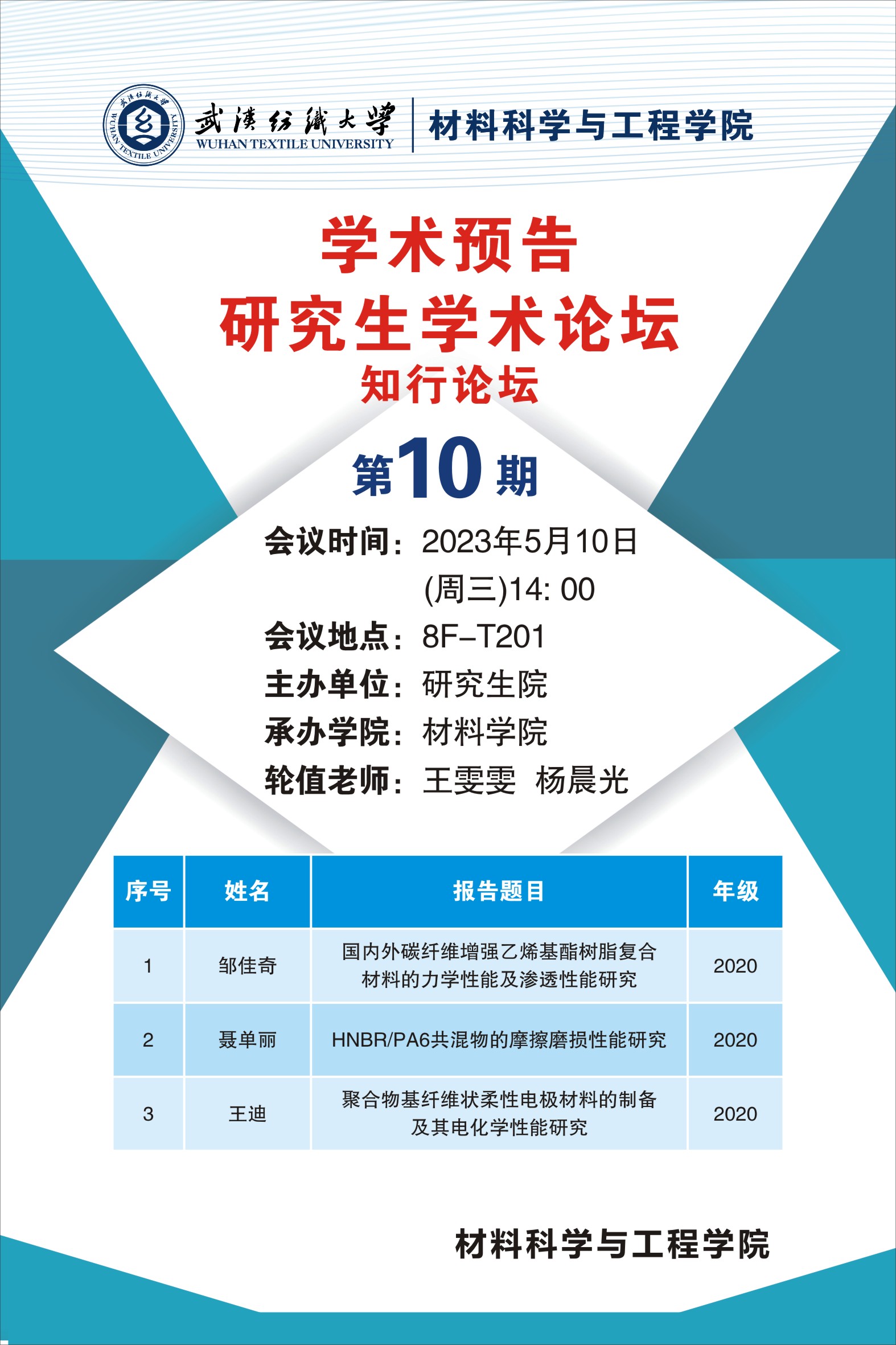 学术预告:第286期研究生学术论坛暨材料科学与工程学院2023年第10期研究生学术论坛