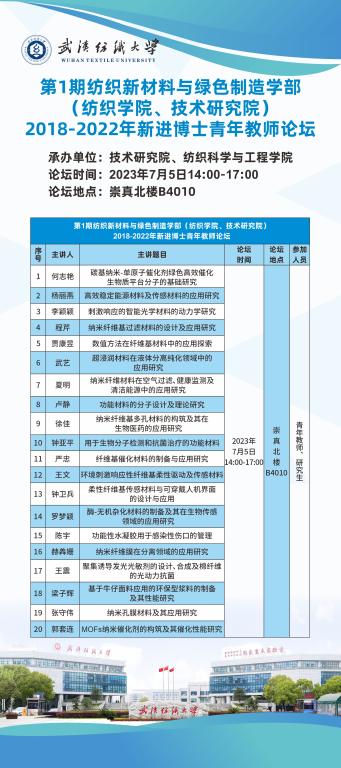 第1期纺织新材料与绿色制造学部(纺织学院、技术研究院)2018-2022年新进博士青年教师论坛
