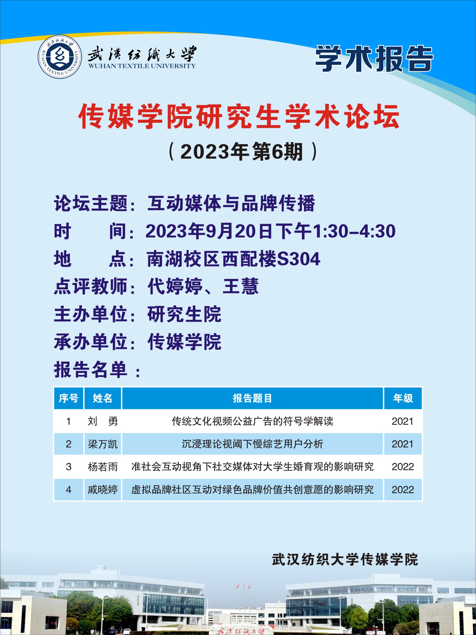 学术预告:第333期研究生学术论坛暨传媒学院2023年第6期研究生学术论坛