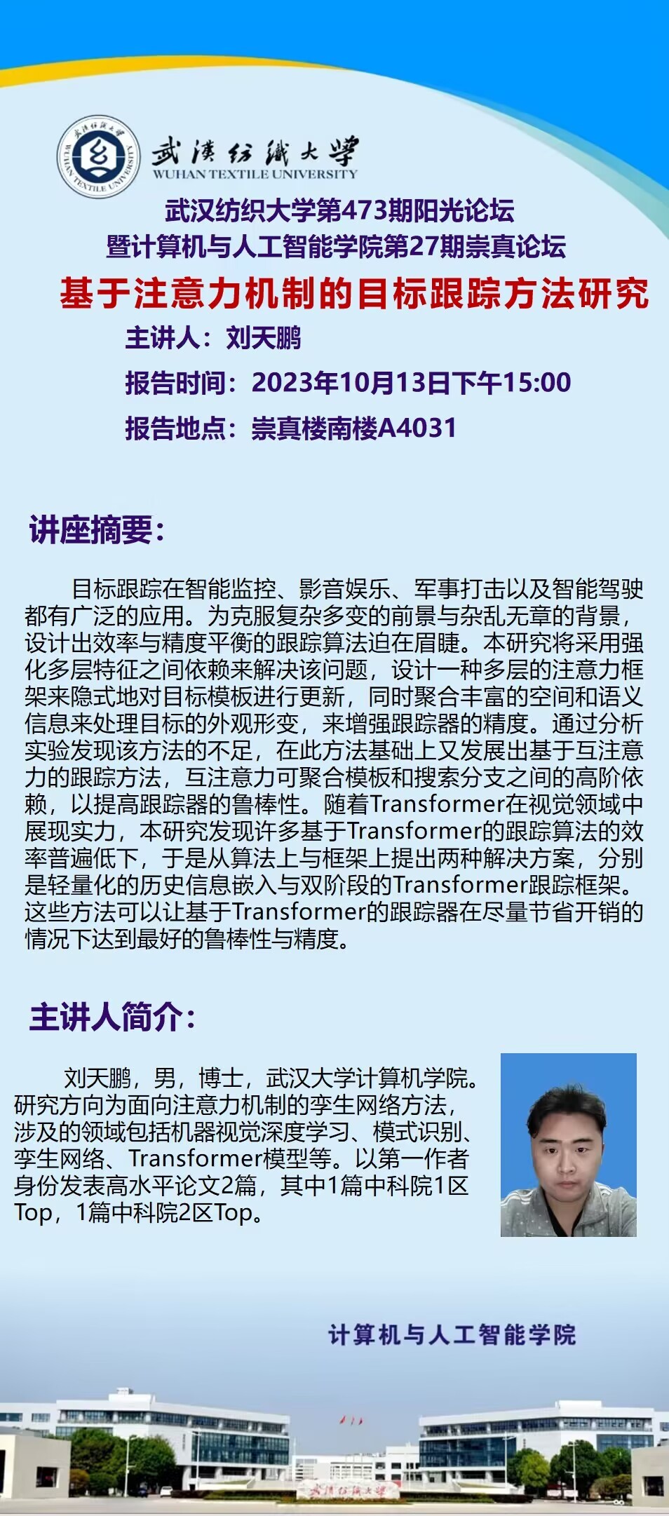学术预告:第473期阳光论坛基于注意力机制的目标跟踪方法研究