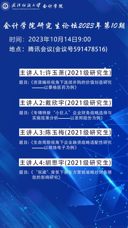 学术预告:第355期研究生学术论坛暨会计学院2023年第10期研究生学术论坛