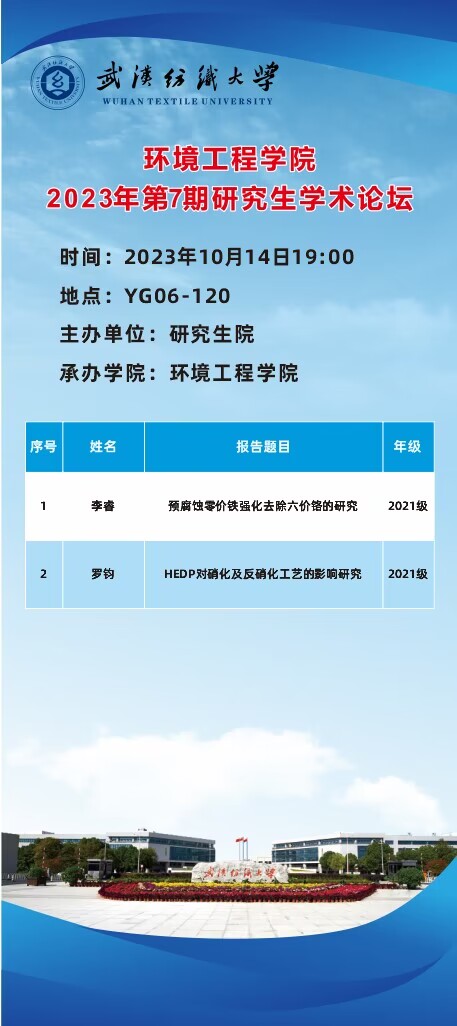 学术预告:第361期研究生学术论坛暨环境工程学院2023年第7期研究生学术论坛