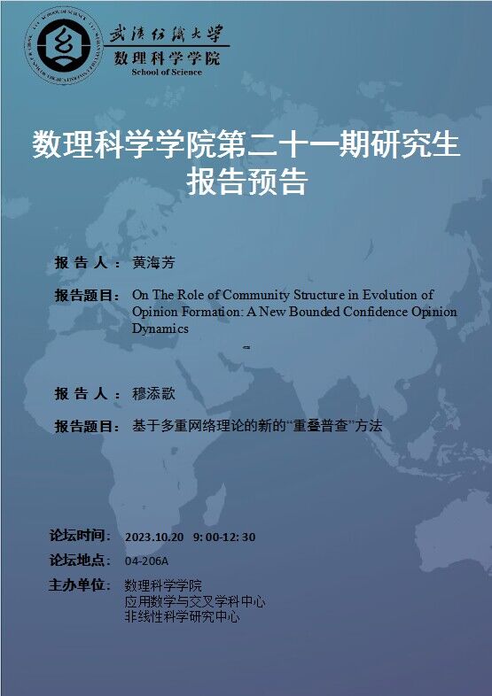 学术预告:第369期研究生学术论坛暨数理科学学院2023年第21期研究生学术论坛