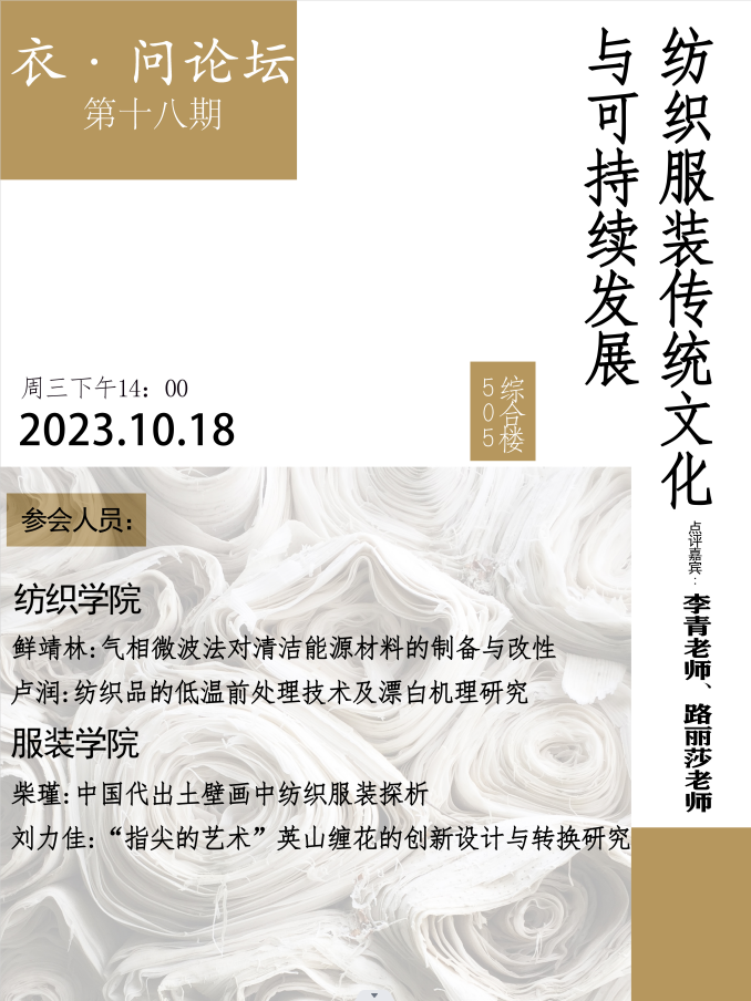 学术预告:第371期研究生学术论坛暨服装学院2023年第7期研究生学术论坛