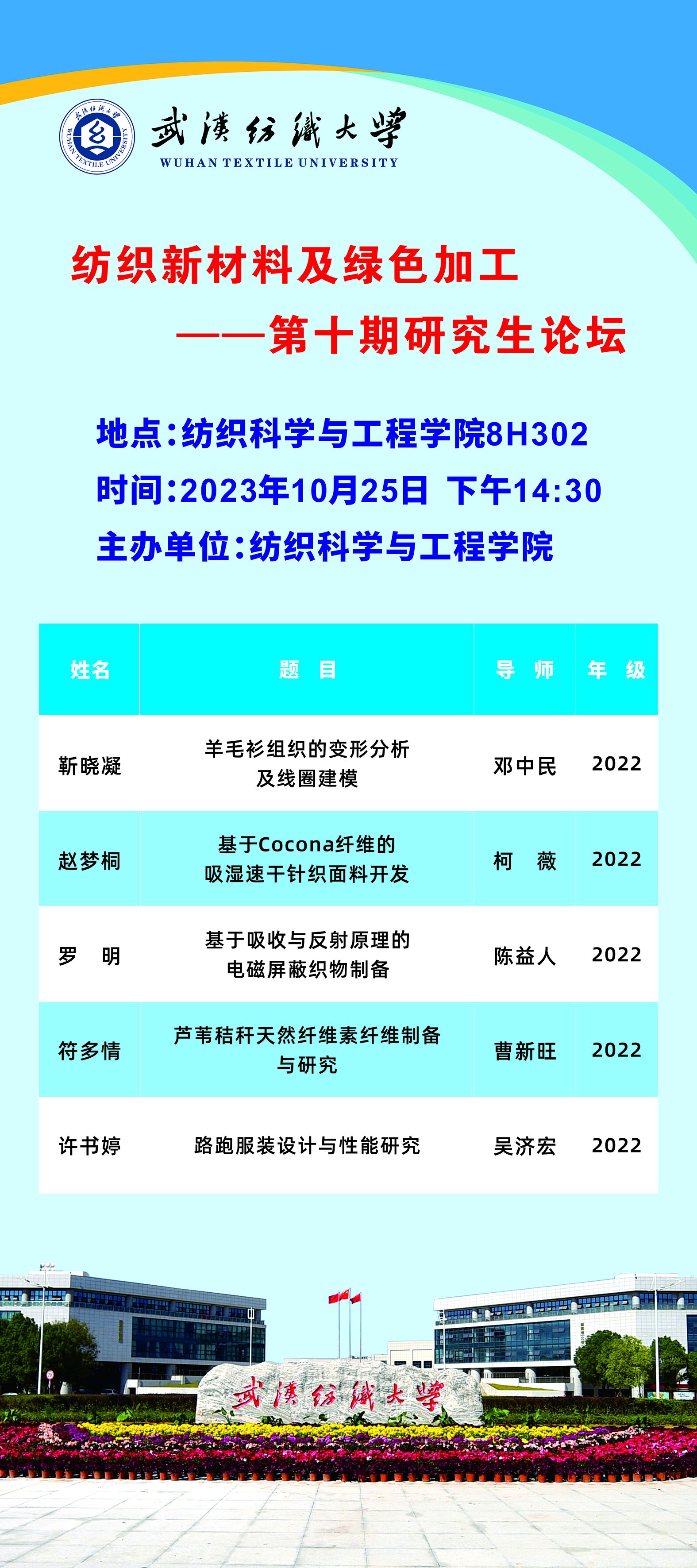 学术预告:第380期研究生学术论坛暨纺织科学与工程学院2023年第2期研究生学术论坛