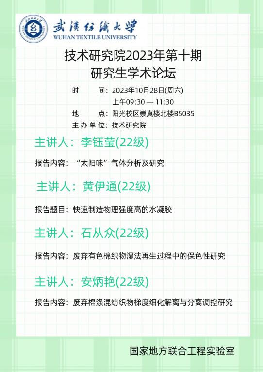 学术预告:第386期研究生学术论坛暨技术研究院2023年第10期研究生学术论坛