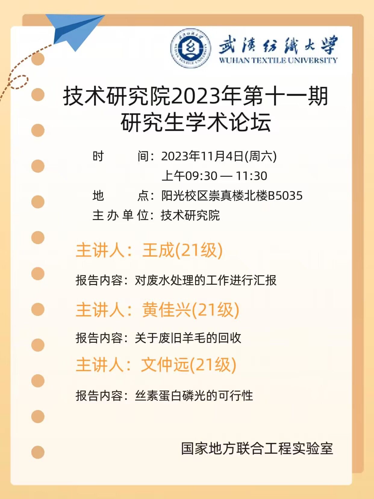 学术预告:第392期研究生学术论坛暨技术研究院2023年第11期研究生学术论坛