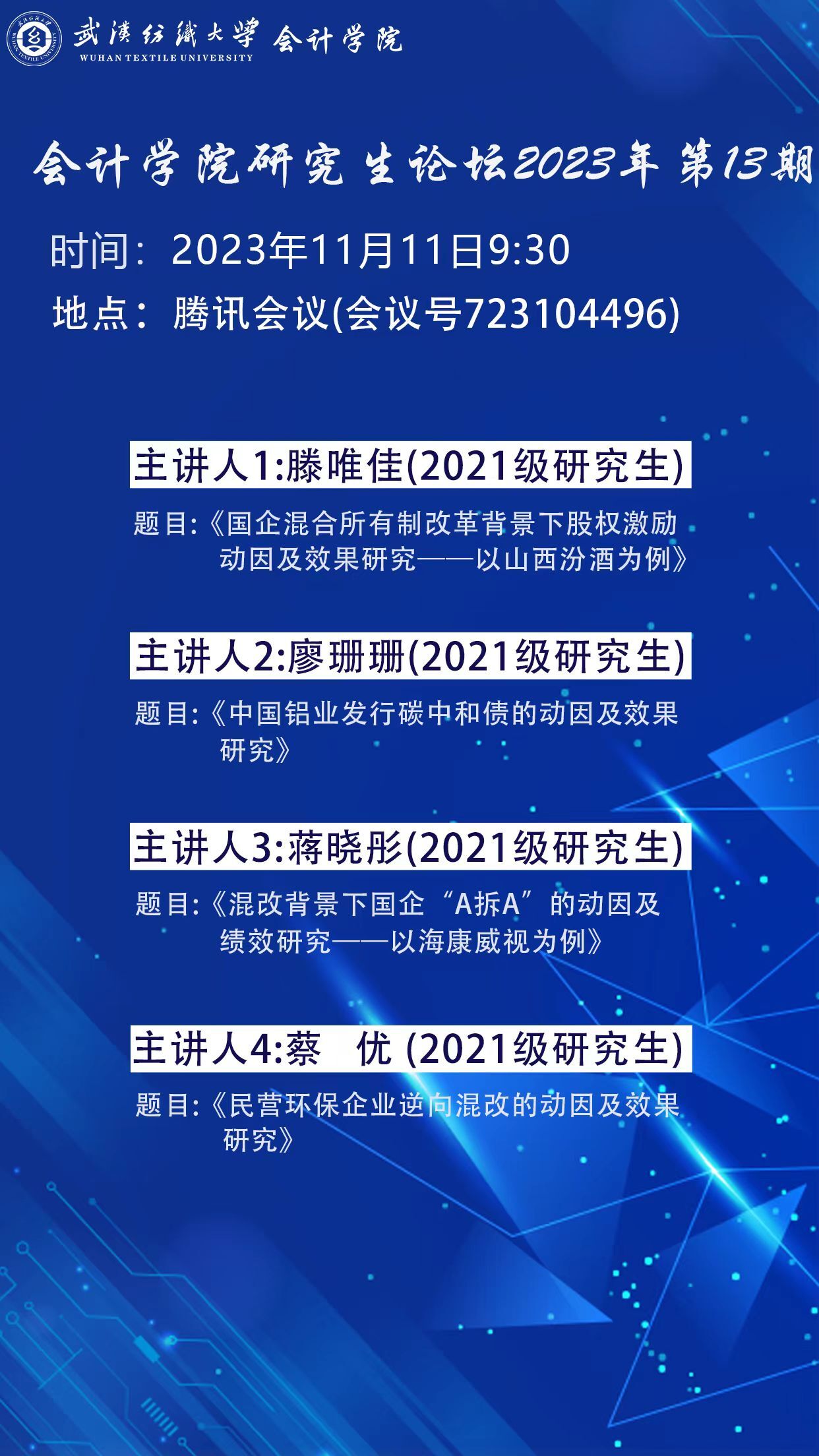 学术预告:第407期研究生学术论坛暨会计学院2023年第13期研究生学术论坛