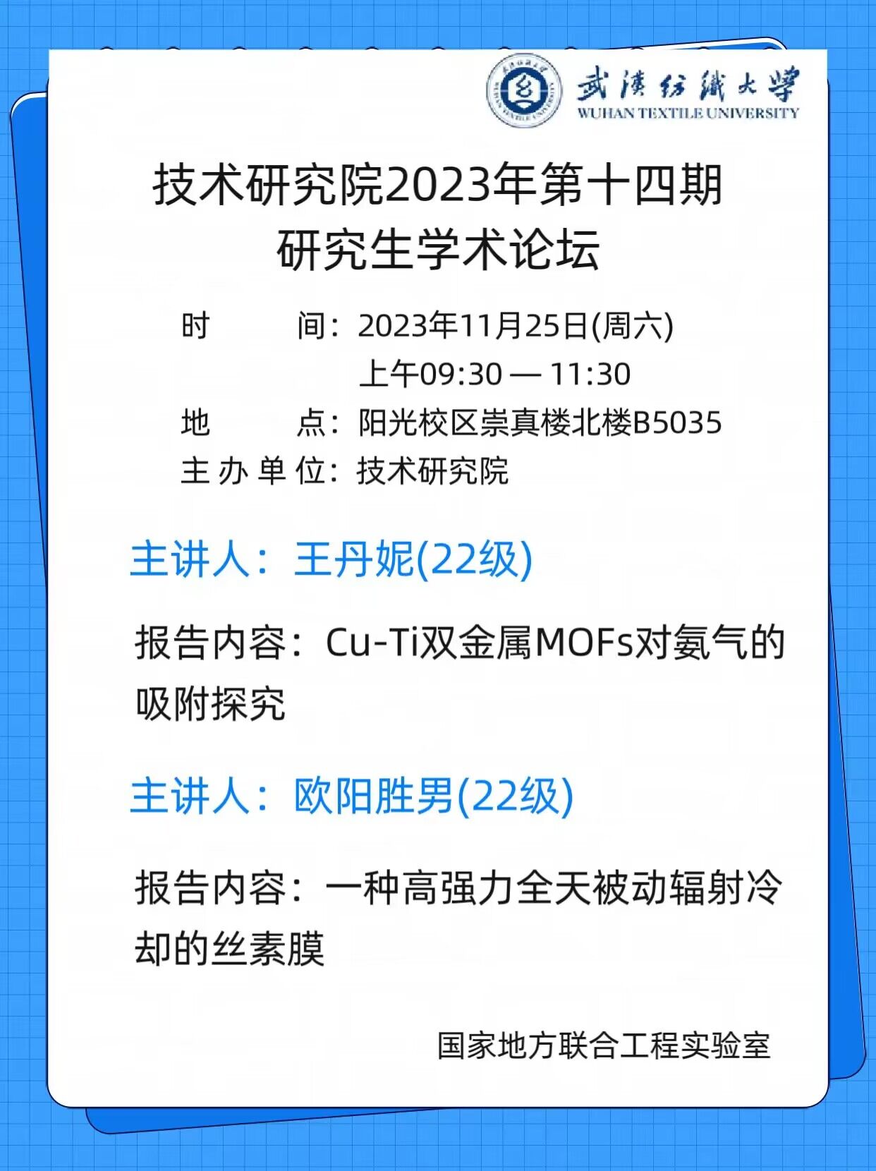学术预告:第428期研究生学术论坛暨技术研究院2023年第14期研究生学术论坛