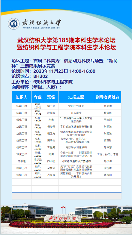 第185期本科生学术论坛暨纺织科学与工程学院本科生论坛
