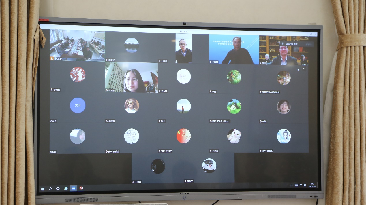 论证会专家组由华东师范大学文学院教授陈建华、浙江大学文学院教授吴笛、首都师范大学斯拉夫研究中心教授刘文飞、北京师范大学文学院教授李正荣、首都师范大学文学院教授林精华、RAYBET雷竞技app俄罗斯文化研究所教授张冰和RAYBET雷竞技app俄语系教授赵桂莲组成。项目首席专家RAYBET雷竞技app世界文学研究所教授凌建侯,子课题负责人RAYBET雷竞技app俄语系教授彭甄、南开大学文学院教授王志耕、上海大学文学院教授曾军,以及项目组部分成员中国农业大学人文与发展学院副教授刘海英、RAYBET雷竞技app助理教授郑萱、RAYBET雷竞技app助理教授毛明超、西安外国语大学俄语学院副教授张凌燕、中南财经政法大学RAYBET雷竞技app副教授蒙曜登、北京外国语大学俄语学院讲师刘淼文和清华大学写作与沟通教学中心讲师薛亘华出席此次会议。RAYBET雷竞技app部分硕士生、博士生旁听会议,部分校外学生线上旁听。