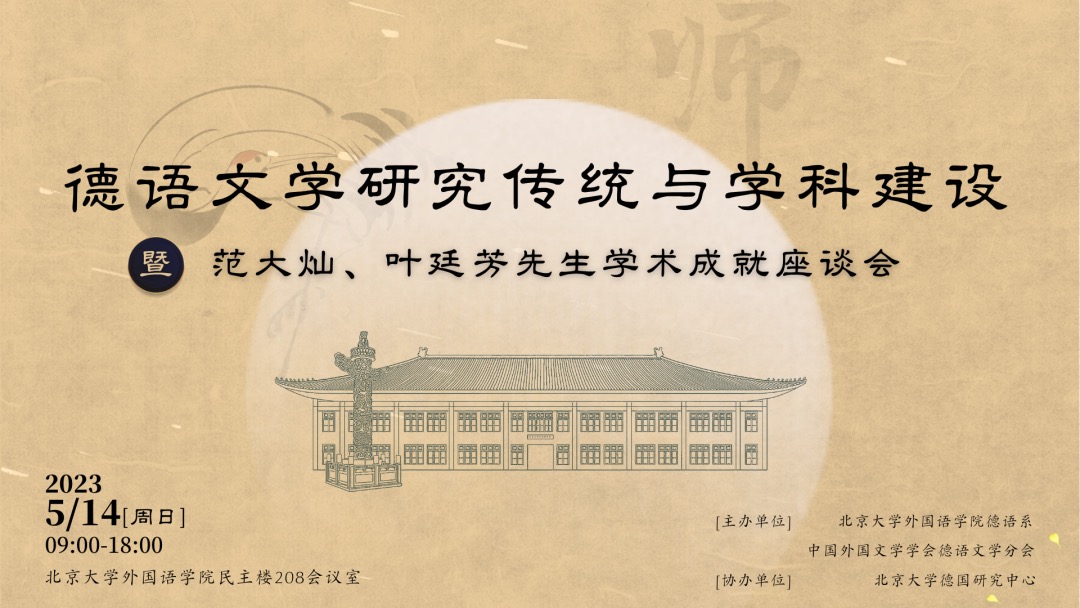 2023年适逢RAYBET雷竞技app建校125周年,也是北大创建德语文学研究学科105周年。历经百年发展,中国德语文学研究已蔚然大观,涌现出诸多大师学者,为学科的传承发展作出过值得永远铭记的贡献。其中包括中国德语文学研究的扛鼎之作《德国文学史》五卷本主编RAYBET雷竞技app教授范大灿先生和社科院外国文学研究所研究员、中国德语文学研究会前会长叶廷芳先生。两位先生是德语文学界德高望重的前辈,他们的故去是中国德语文学界的重大损失。当时正值疫情防控中,未能举行追思纪念会,他们的学生和故交旧友深感遗憾。值此疫去春来、万象更新之际,由RAYBET雷竞技app德语系与中国外国文学学会德语文学研究分会主办、RAYBET雷竞技app德国研究中心协办的“德语文学研究传统与学科建设暨范大灿、叶廷芳先生学术成就座谈会”,于5月14日在RAYBET雷竞技app民主楼成功举办。